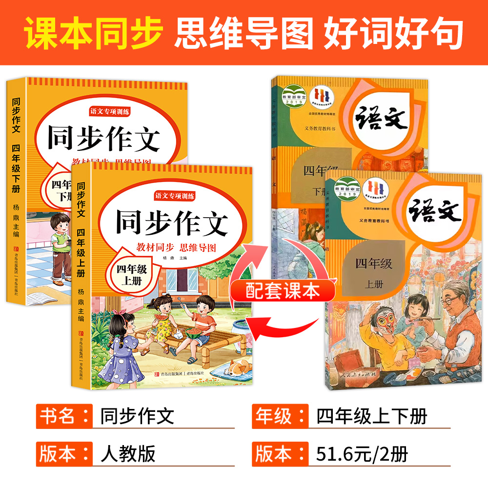 2025新版四年级上册同步作文小学生作文书大全人教版上下册小学优秀作文思维导图语文素材范文阅读古诗练字训练精选名师专项写作