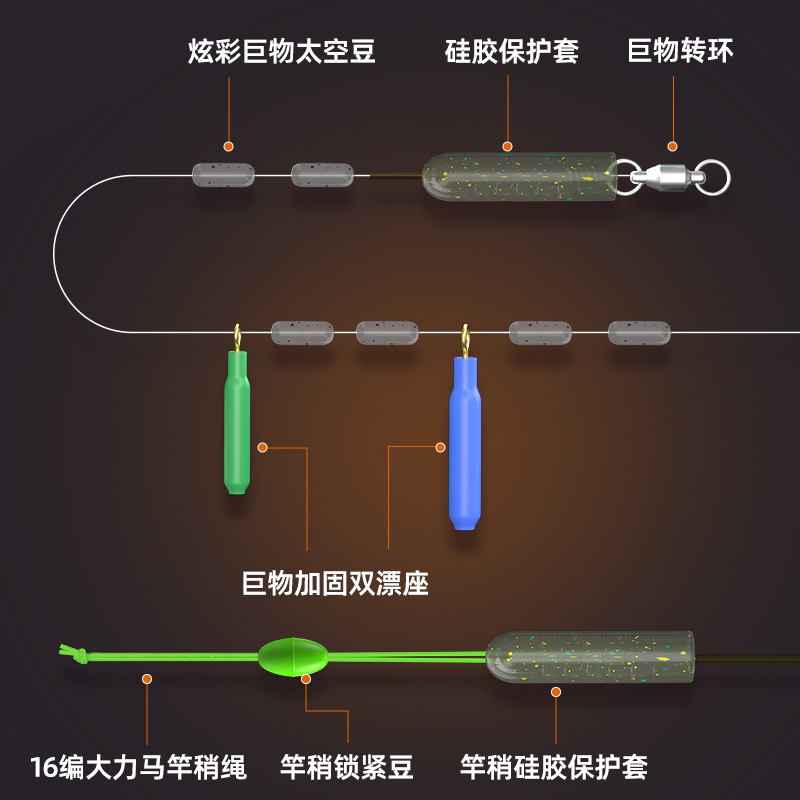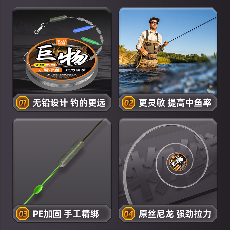 无铅大物线组鲢鳙巨物主线组成品绑好鱼线PE加固青草鲤专用跑铅