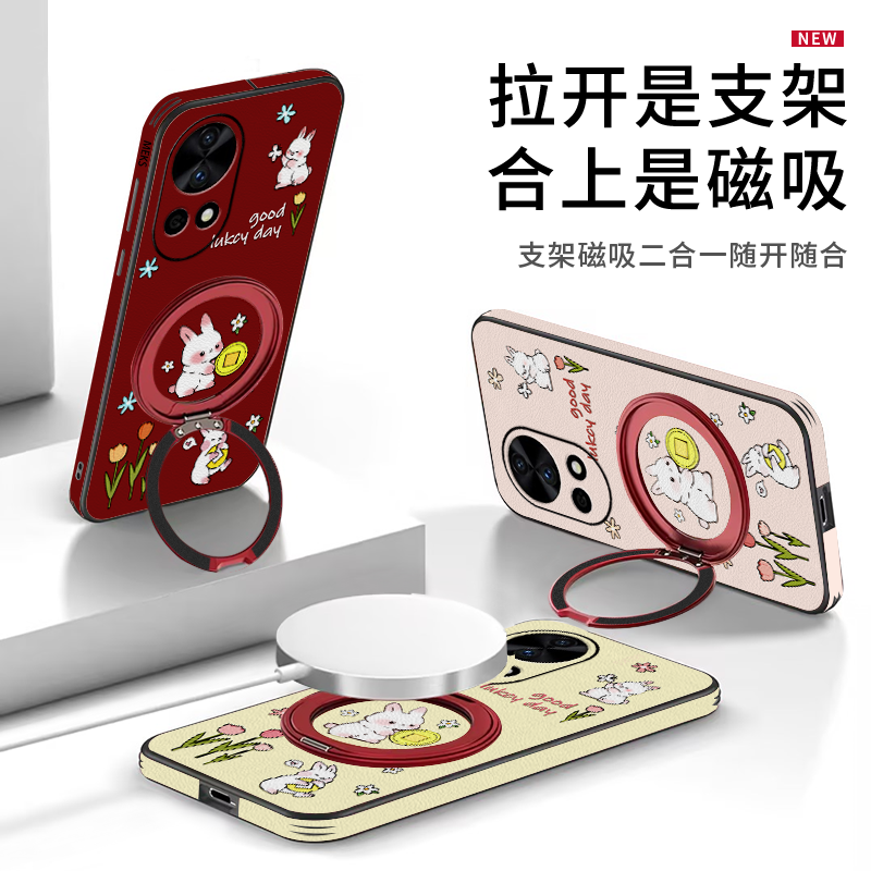 金钱兔适用华为nova13手机壳nova14活力版新款nova12小清新nova12pro女款12ultra磁吸支点nova11pro皮纹全包