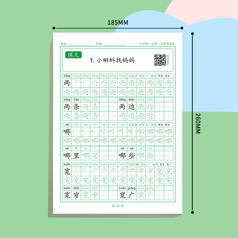 点阵练字帖书写本小学生一二三年级语文上下册同步汉字控笔生识字