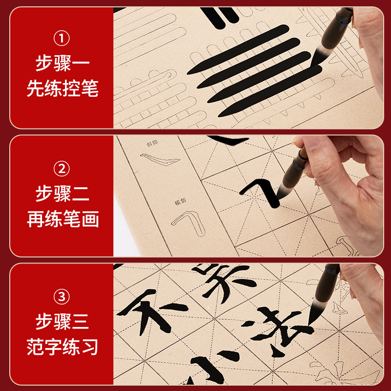 小学生毛笔字帖颜体毛笔控笔训练初学者入门毛笔字练习宣纸书法专用纸儿童练字纸软笔笔画描红欧体临摹练字帖