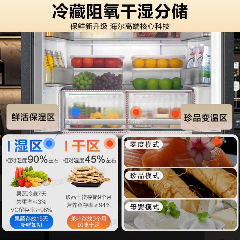 【李佳琦直播间美妆节】海尔539L双开四门一级能效电冰箱