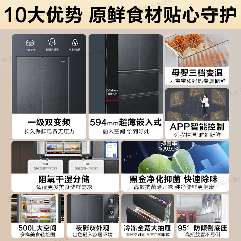 海尔500升法式超薄零嵌入式大容量一级能效无霜家用电冰箱旗舰店