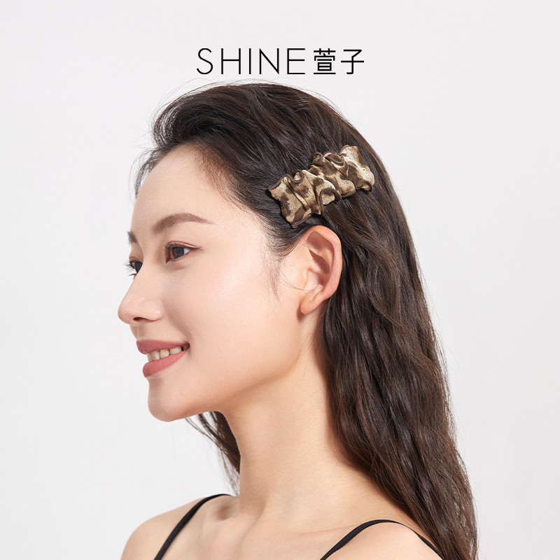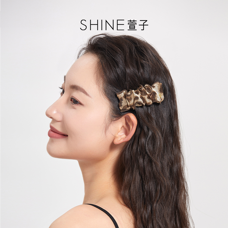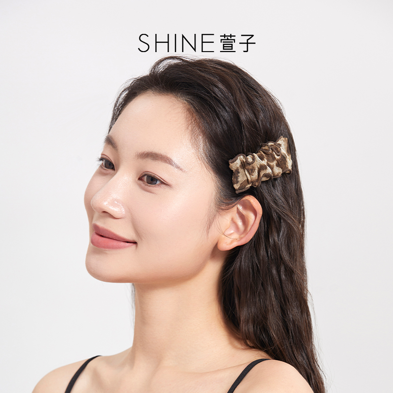 SHINE萱子饰品感性豹纹系列时髦褶皱边夹设计感花纹发夹生日礼物