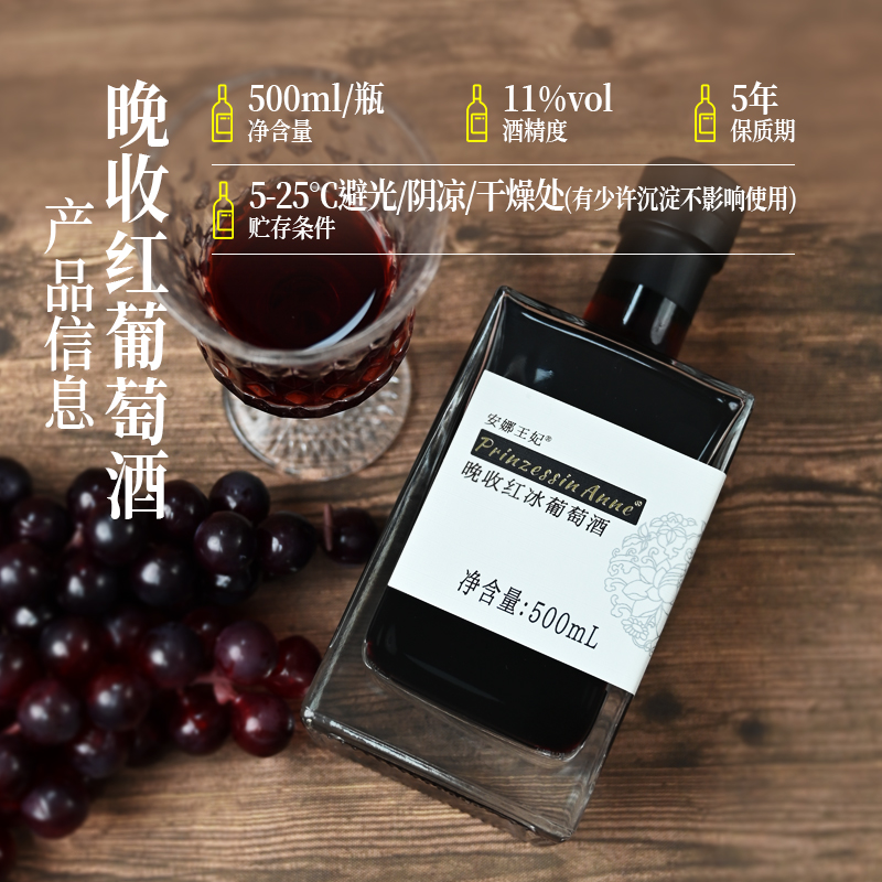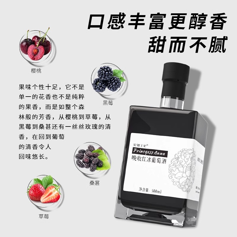 安娜王妃晚收红葡萄酒红酒冰酒女生甜型女士微醺晚安酒冰白酒庄