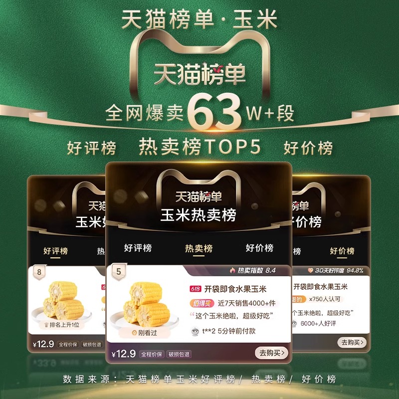 即食玉米水果甜玉米段真空包装开袋学生免煮早餐低脂速食代餐健康
