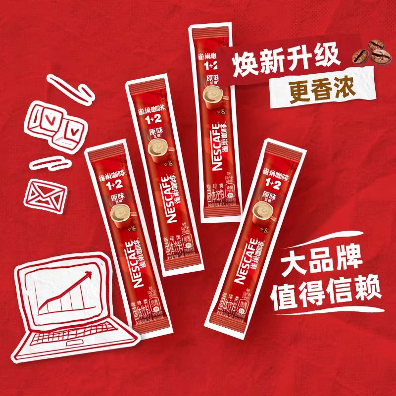 雀巢咖啡1+2原味特浓低糖90条装三合一速溶咖啡粉混合口味冲饮