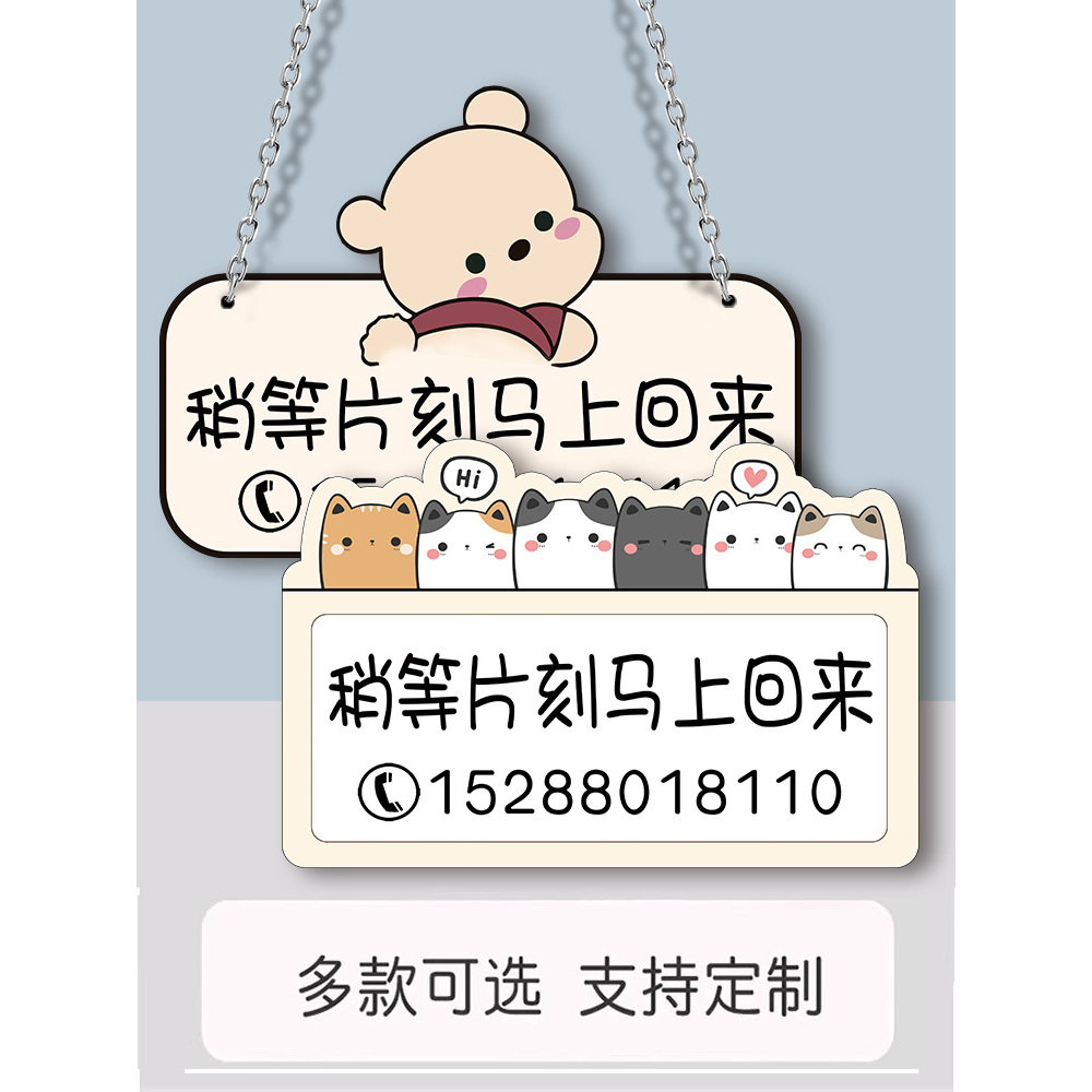 外出吃饭挂牌马上回来提示牌回家吃饭外出送货马上回来挂牌稍等片刻马上回来温馨提示牌有事请拨打电话牌子