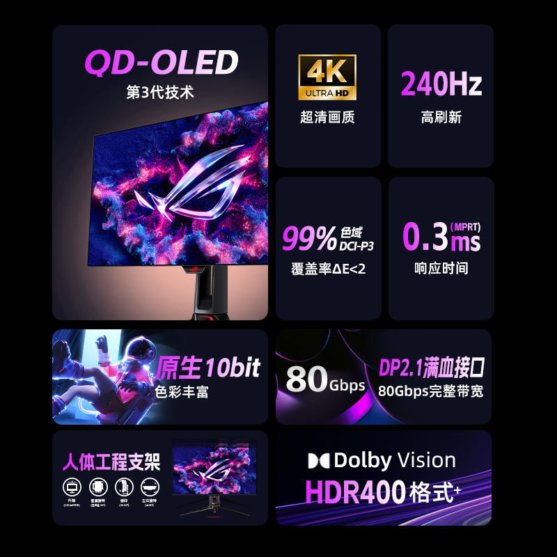 华硕ROG超神X PG32UCDMR 32英寸4K240Hz显示器3代OLED DP2.1屏幕