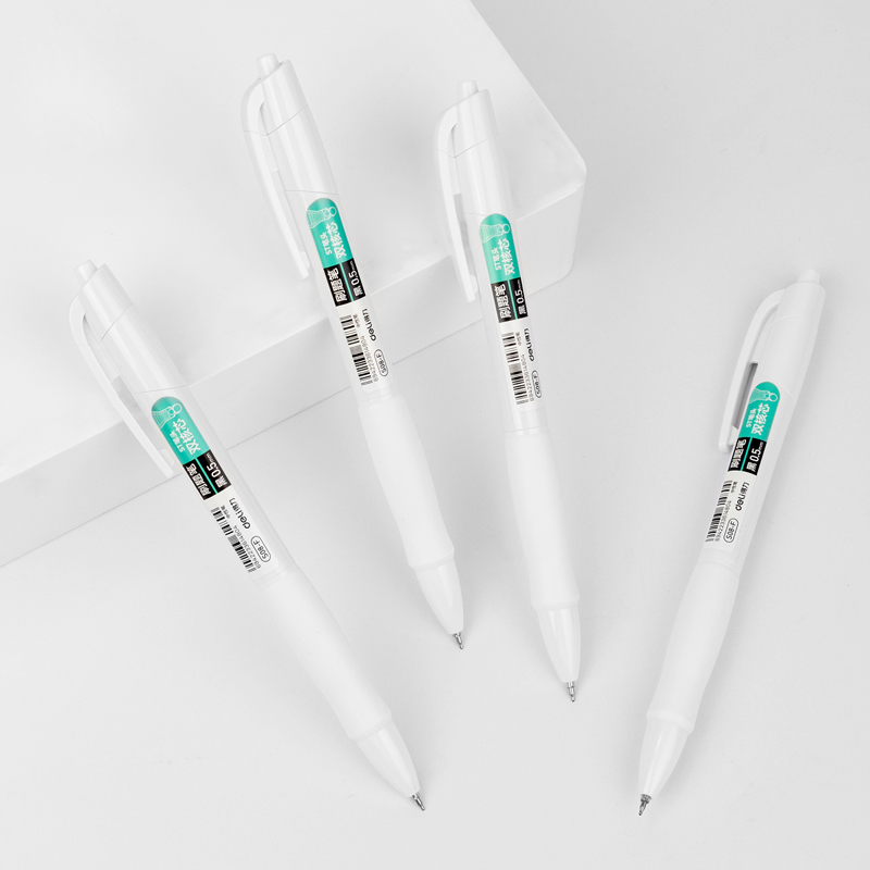 【新品上市】得力刷题笔ST头双核芯按动中性笔速干学生初高中生专用刷题笔黑笔替芯顺滑0.5碳素笔签字笔S08-E