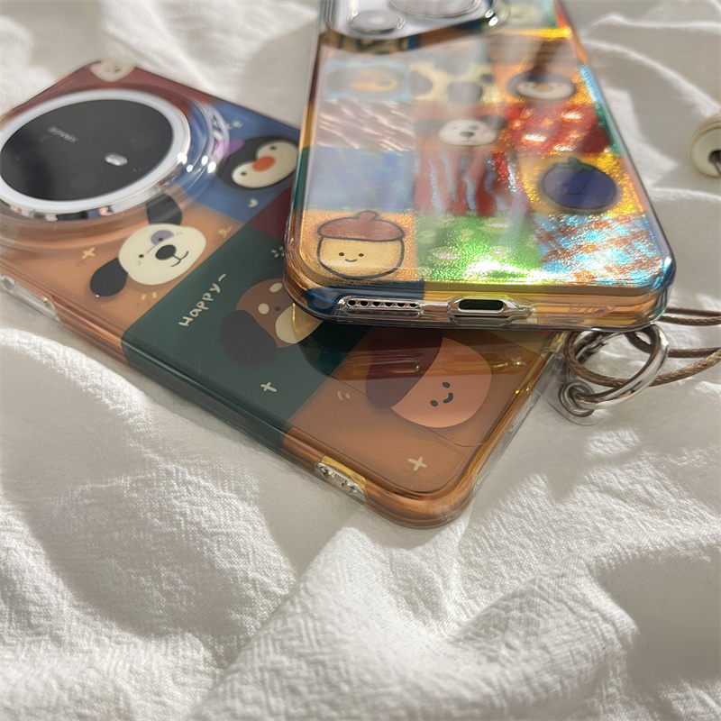 简约拼接格纹小动物适用华为mate70pro+手机壳mate60pro链条挂绳pura70pro双层新款保护套mate60个性情侣胶套
