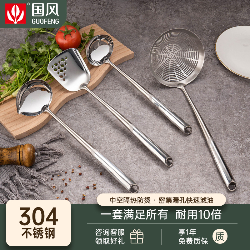 国风304不锈钢锅铲家用炒菜铲子汤勺漏勺炒勺厨房一体厨具全套装