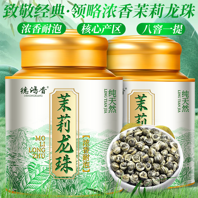 【大份量]茉莉龙珠浓香型绿茶上等花香浓郁特级耐泡花茶罐装