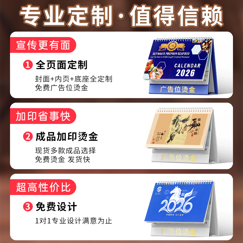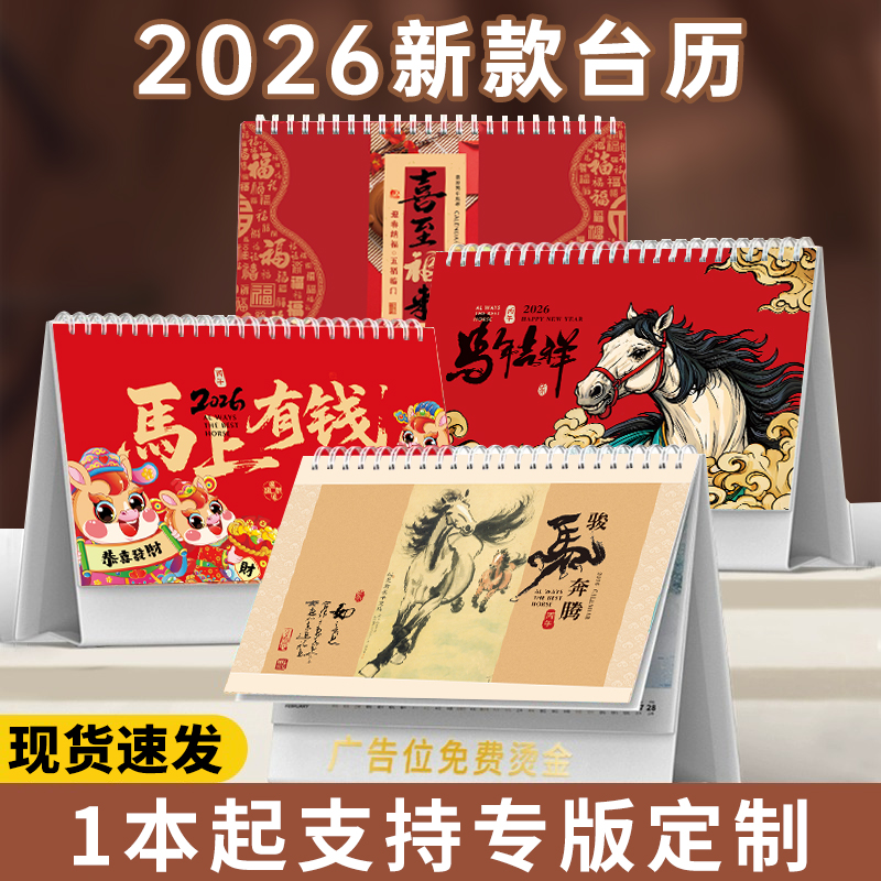 2026马年台历定制全内页专版免费烫金广告logo商务日历挂历定做