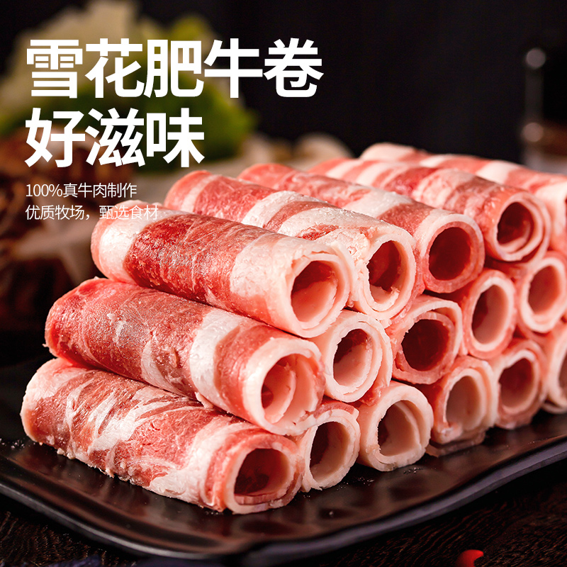肥牛卷原切牛肉卷火锅牛肉片安格斯肥牛片烤肉食材谷饲澳洲m3肥牛