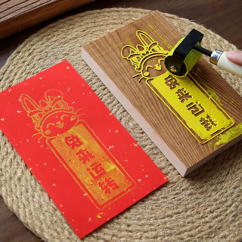 节日红包diy手工木雕版印刷术幼儿园儿童暖场亲子拓印工具材ax62
