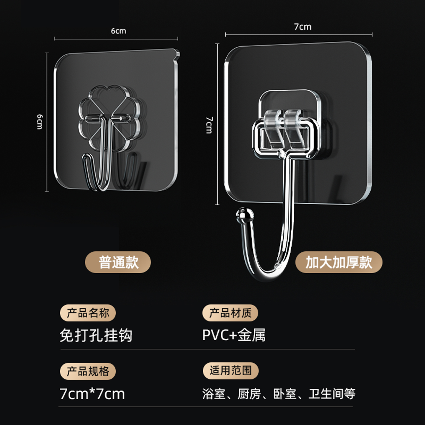 透明连排挂钩六连挂强力粘胶不掉落收纳壁挂无痕免打孔门后粘钩