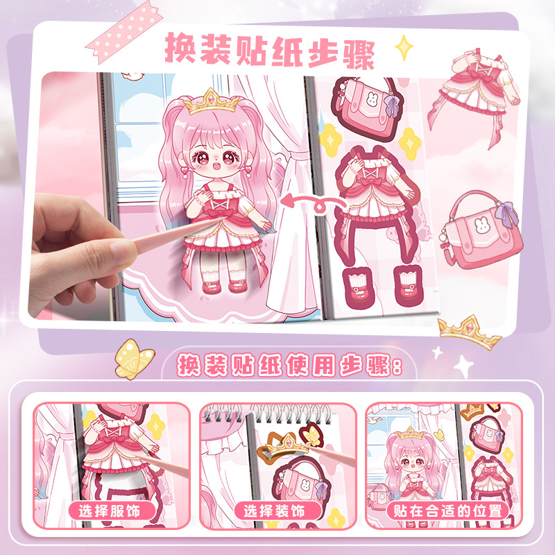 儿童益智换装贴纸手账场景化妆贴画可爱装饰卡通小图案涂色绘画