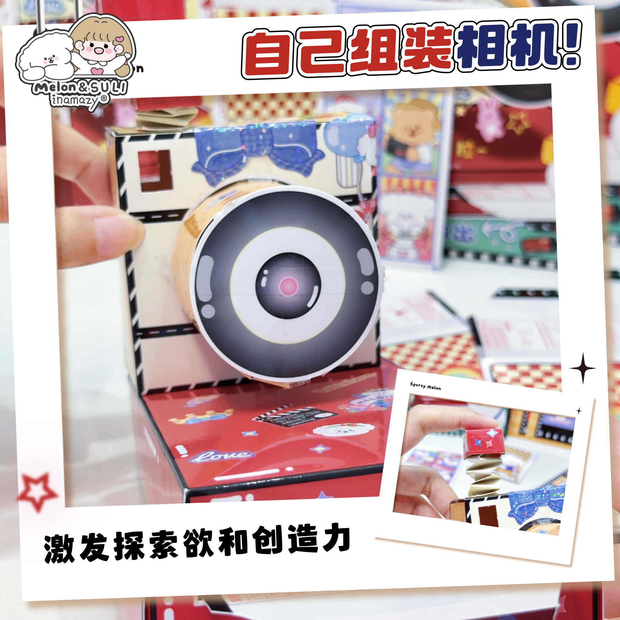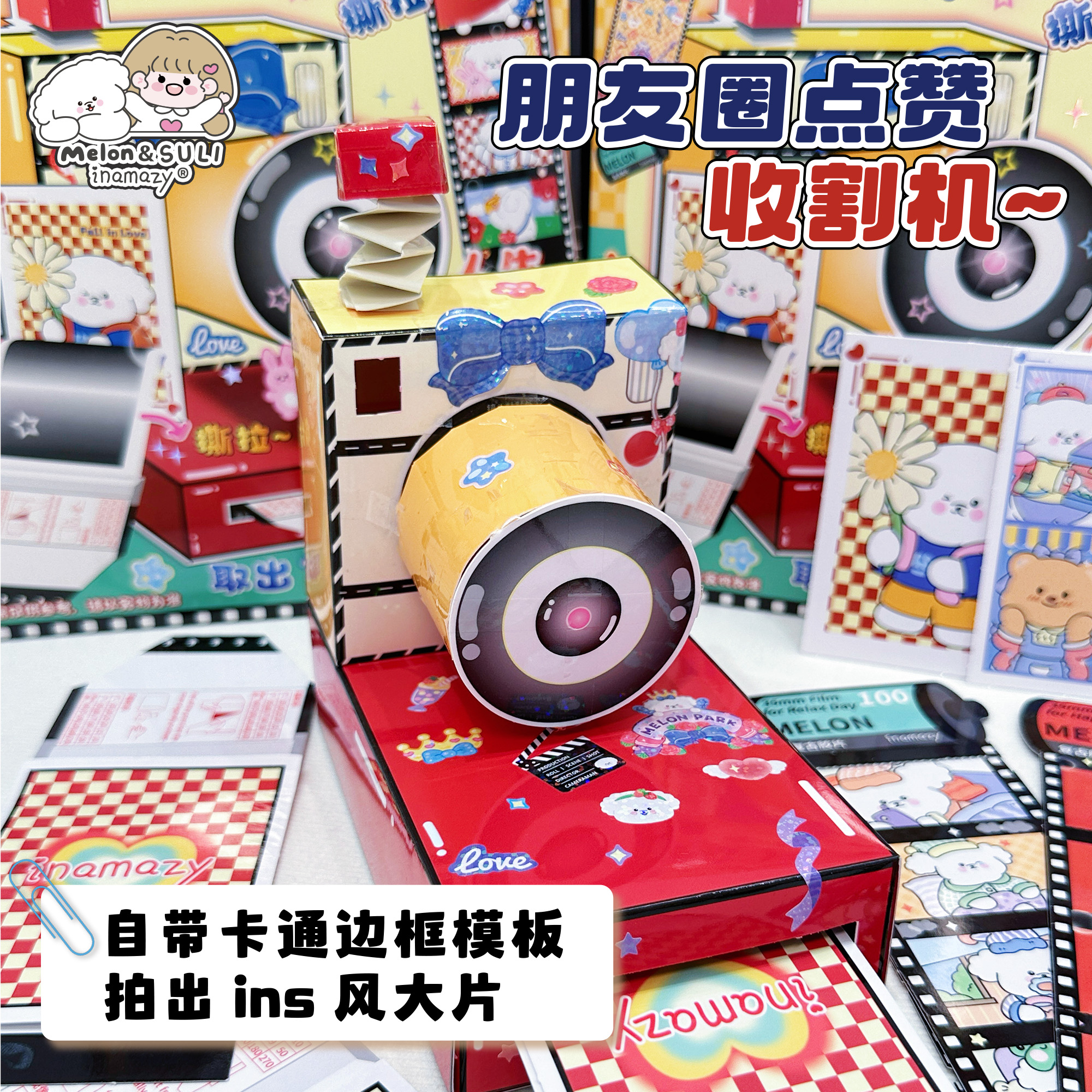 inamazy撕拉片相机儿童女孩玩具安静书贴纸手工制作咕卡立体贴纸