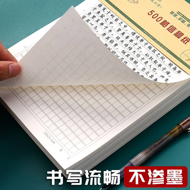 晨光加厚原稿纸作文纸400格小学生用大学报告横线横格原稿双行16K信笺米字格带班级单线双线申请书专用信稿纸