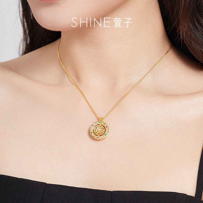 SHINE萱子饰品复古中式罗盘锁骨链精致优雅国风项链生日礼物送人