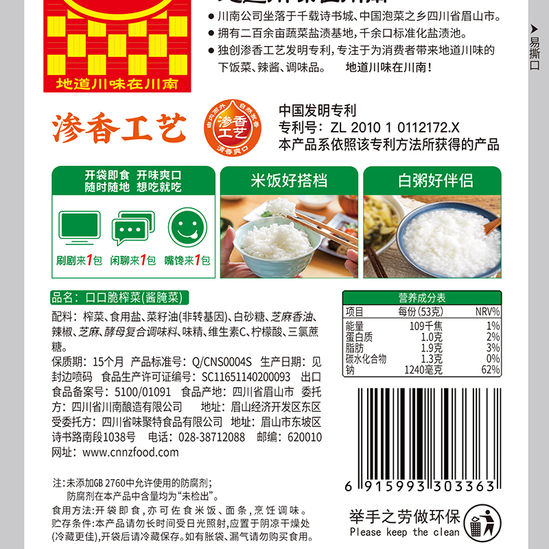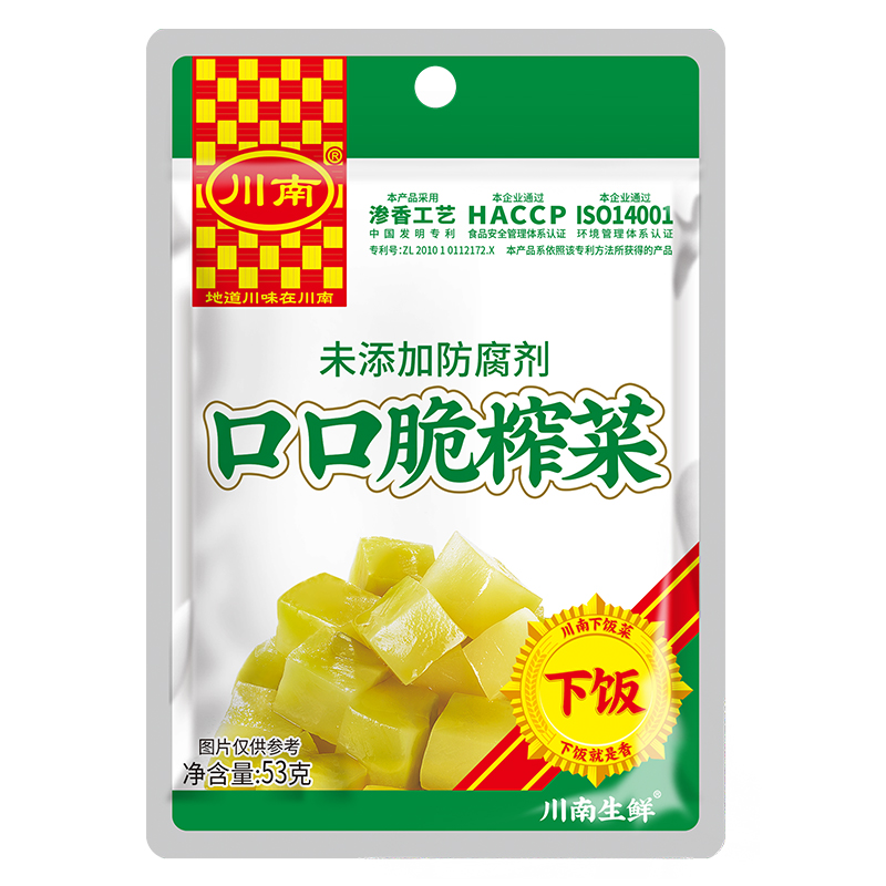 川南口口脆榨菜53g四川特产清淡微辣小咸菜真芯块开味下饭菜小包