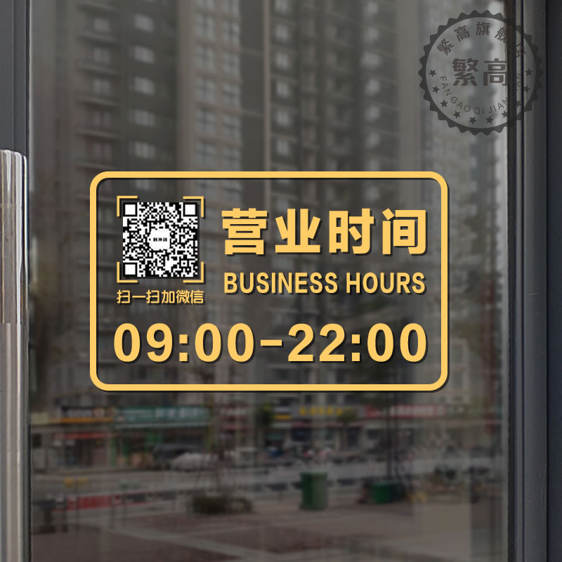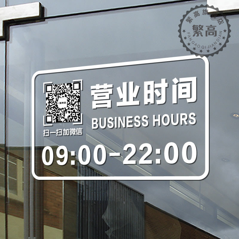 正在营业店铺玻璃门贴纸定制二维码营业时间创意橱窗广告静电贴画