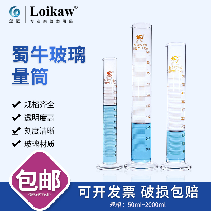 蜀牛 玻璃量筒 实验室量具 计量筒 50ml/100/250/500/1000/2000ml