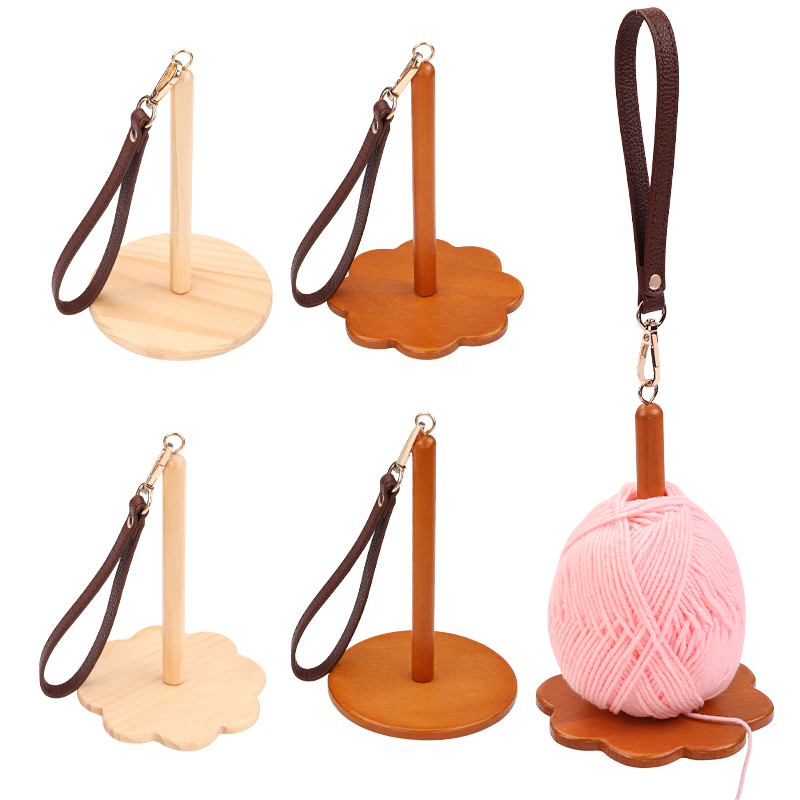 便携式手腕木质支架家用绕线毛线球架纱线收纳带皮革腕带针织用架