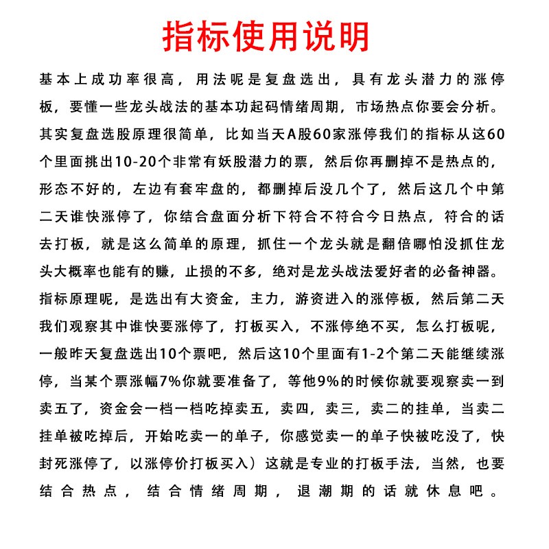 跟随主力资金游资监测拉升通达信指标公式龙头战法炒股看盘神器