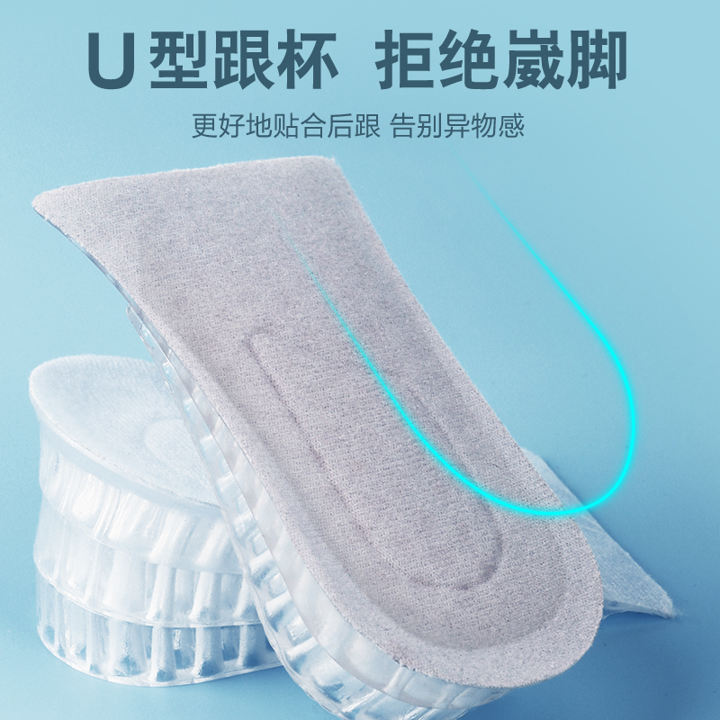 硅胶内增高鞋垫软底马丁靴隐形减震增高垫半垫不累脚后跟舒适鞋子