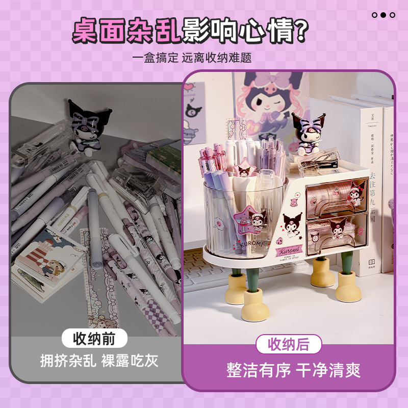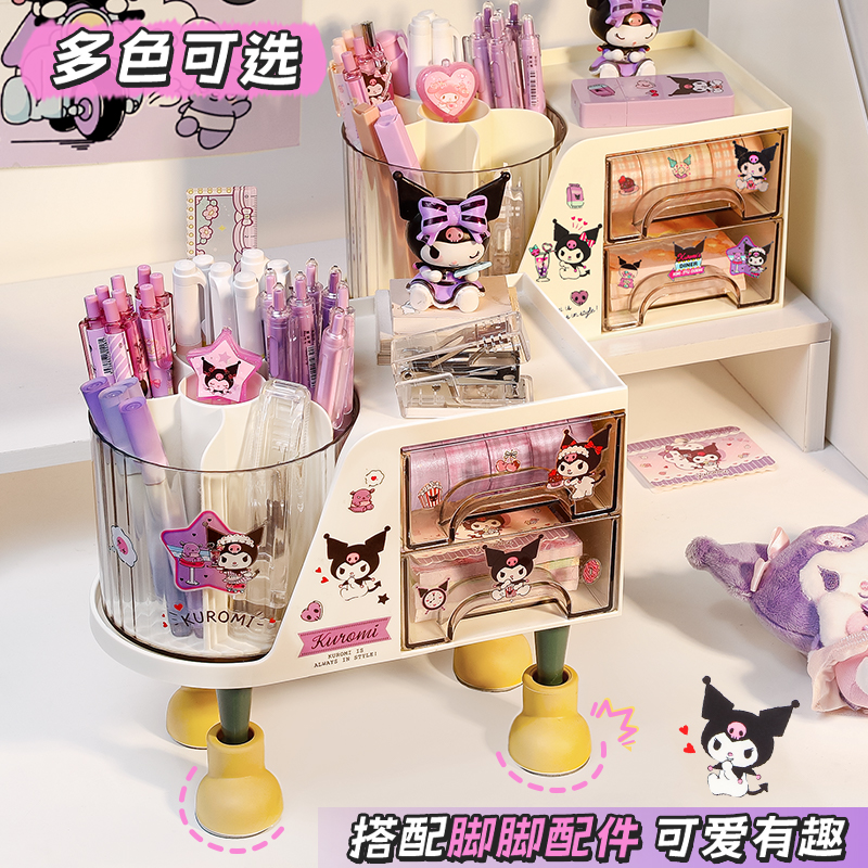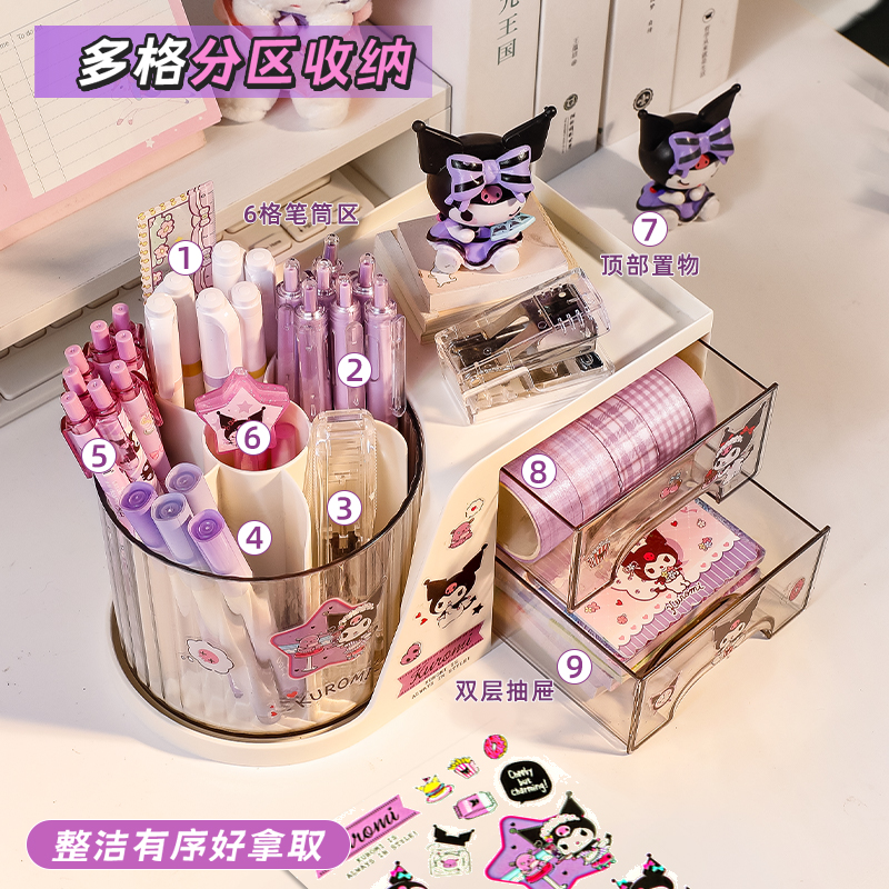 萌趣熊猫!旋转笔筒收纳盒儿童学生多功能一体抽屉式笔桶创意高颜值男孩女孩书桌置物架桌面大容量文具收纳盒