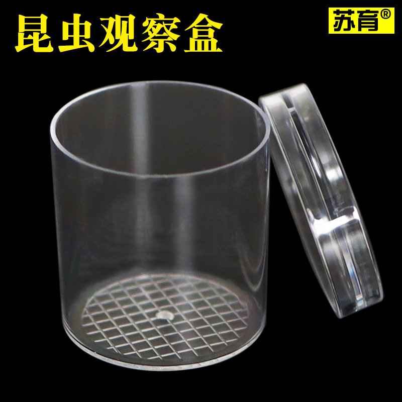 【苏育】昆虫观察盒带出气孔防窒息带放大镜J29040底部小方格易于观察收集饲养昆虫制作标本孵卵盒虾卵饲养瓶