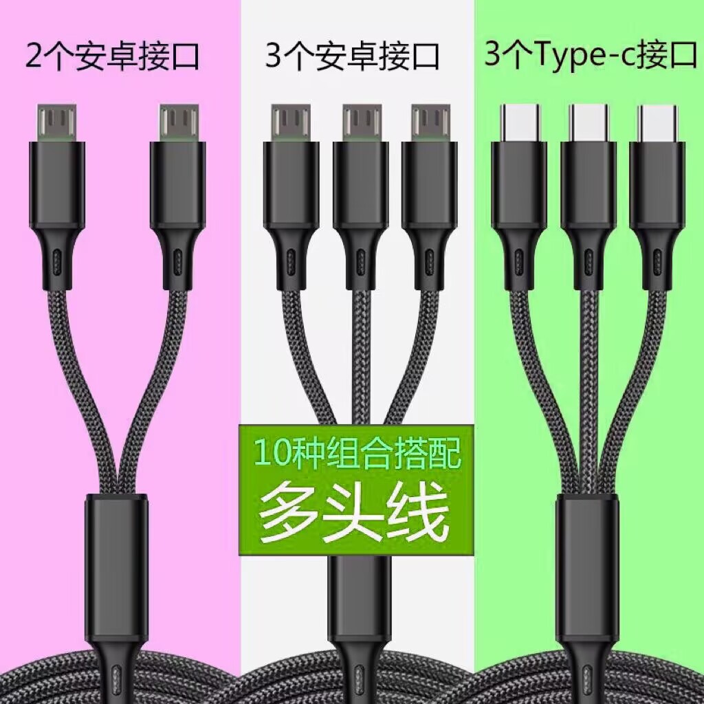 多头安卓一拖三数据线全苹果3个typec三合一充电线多功能手机通用