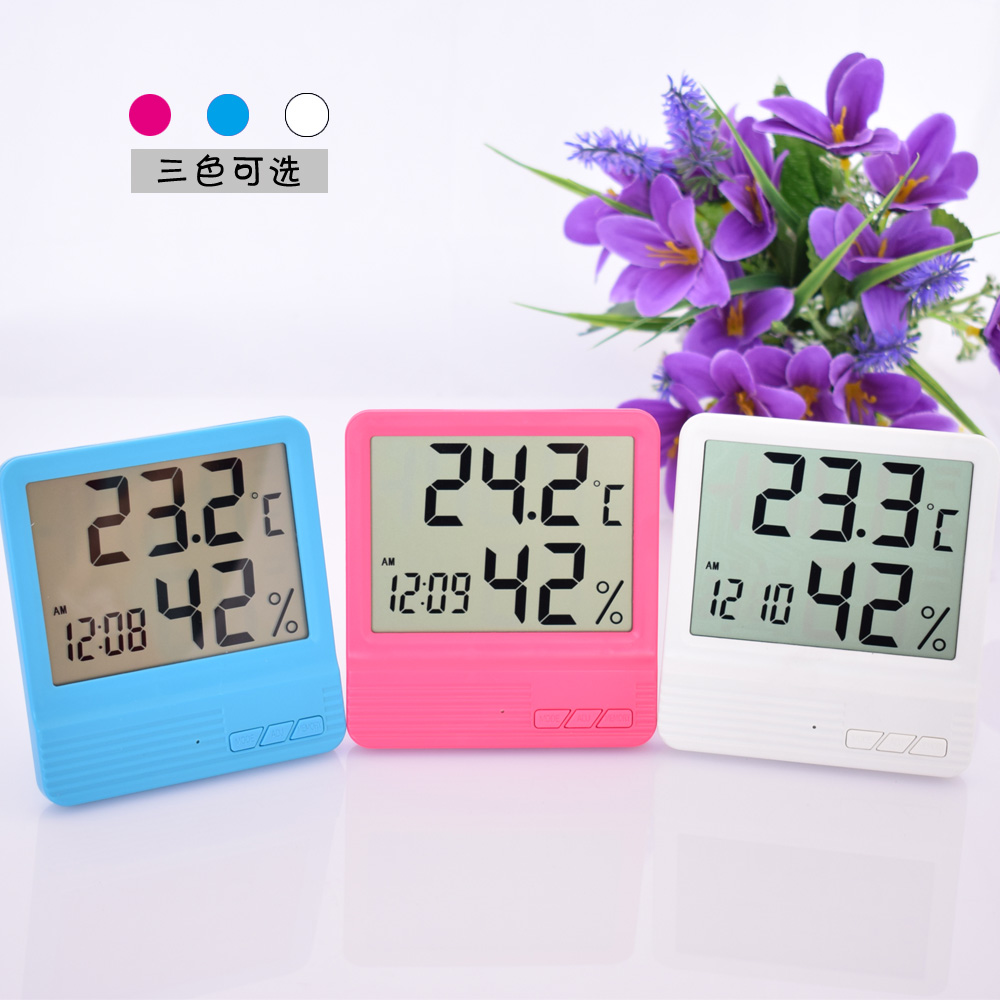创纪电子数字干湿温度计室内高精度温湿度计家用台式温度表带闹钟