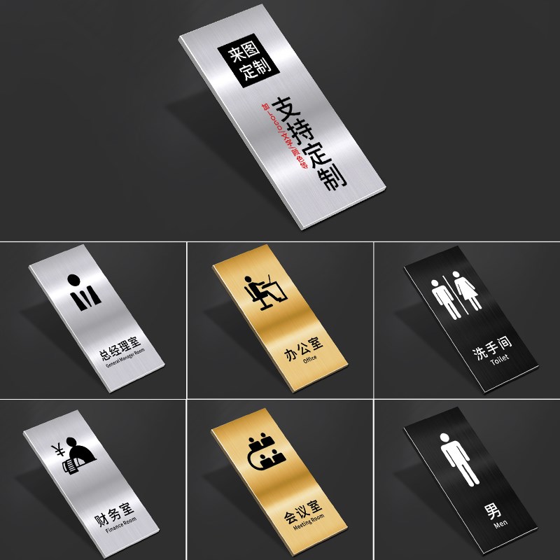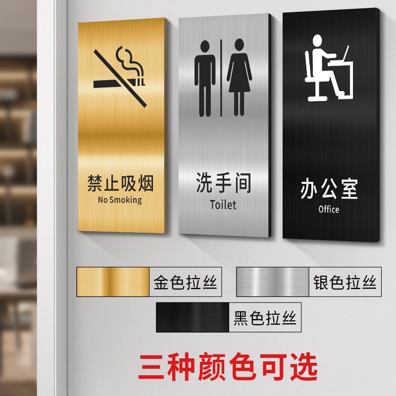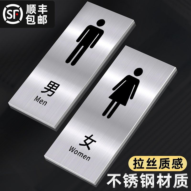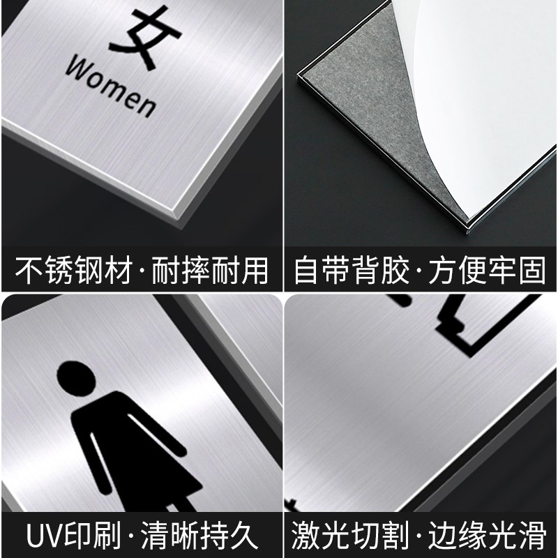 热销不锈钢洗手间标识牌男女卫生间请节约用水温馨导向方向箭头提