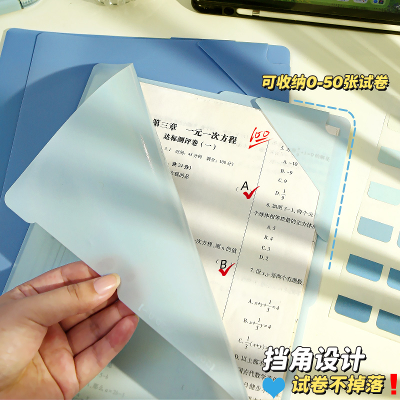 渐变挡角文件夹L型试卷收纳袋初中生专用防水A4资料夹透明单片夹