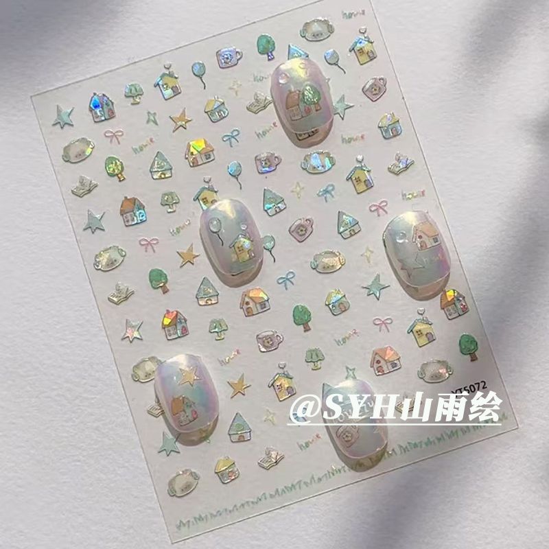 新款卡通小屋子贝壳光立体美甲贴纸多巴胺可爱背胶diy指甲装饰贴