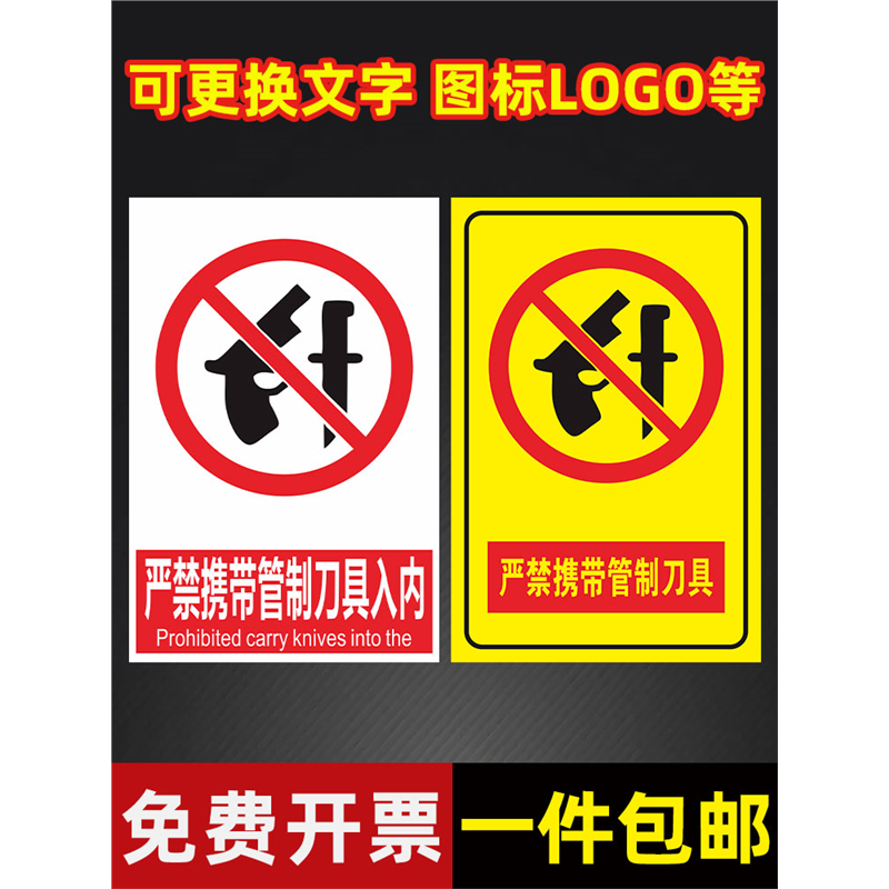 禁止携带管制刀具入内标识牌 注意不准严禁按照要求车间验厂消防安全警示提识标示志牌铝PVC板墙帖纸广告宣传