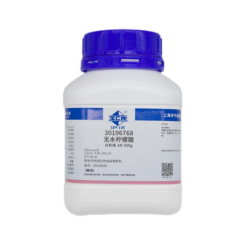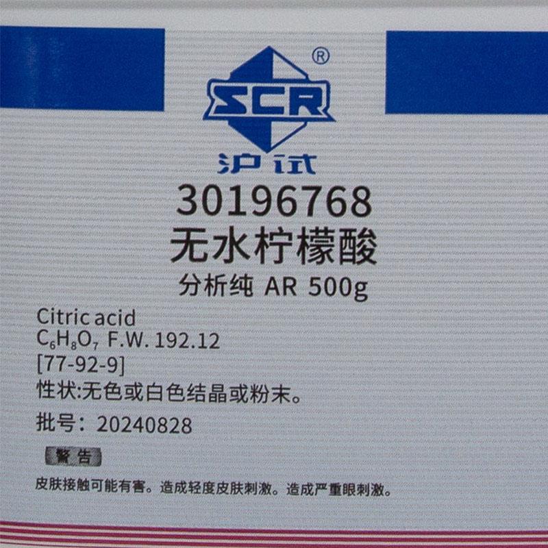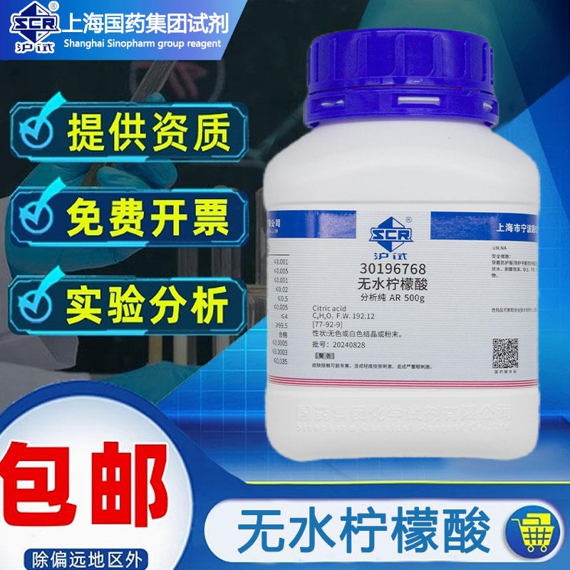 国药无水柠檬酸分析纯AR沪试化学试剂实验室药品化工原料清洗除垢