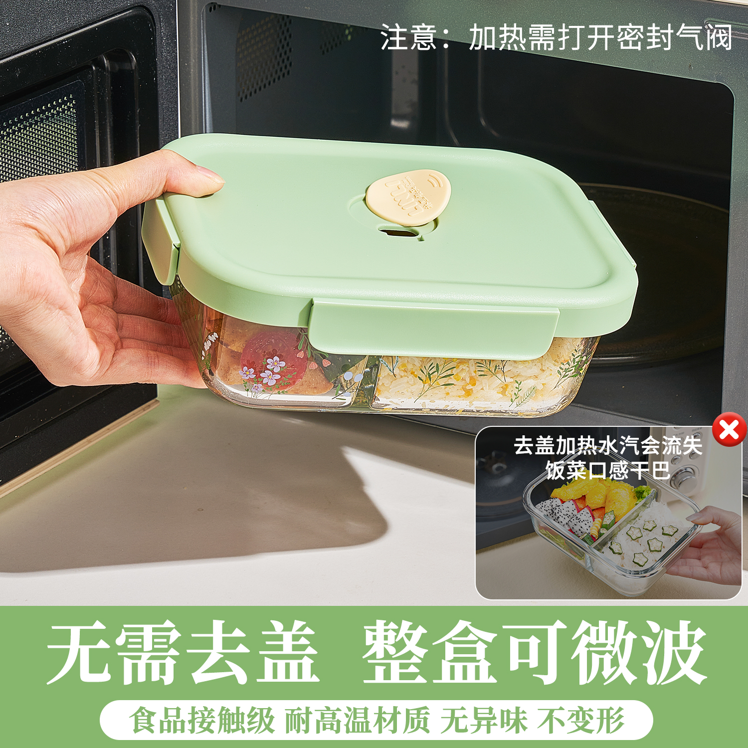 高颜值玻璃饭盒女微波炉加热专用上班族2025新款分格餐盒密封盒