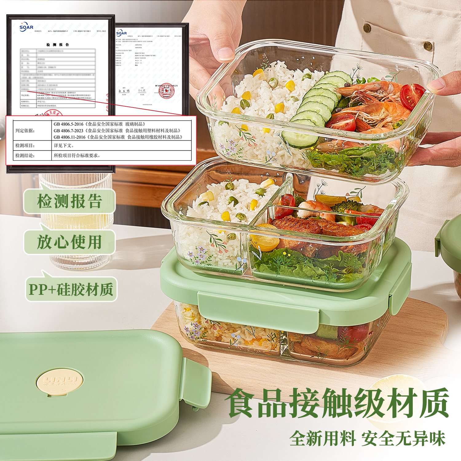 上班族玻璃饭盒带饭餐盒可微波炉加热专用碗分隔便当盒保温保鲜盒