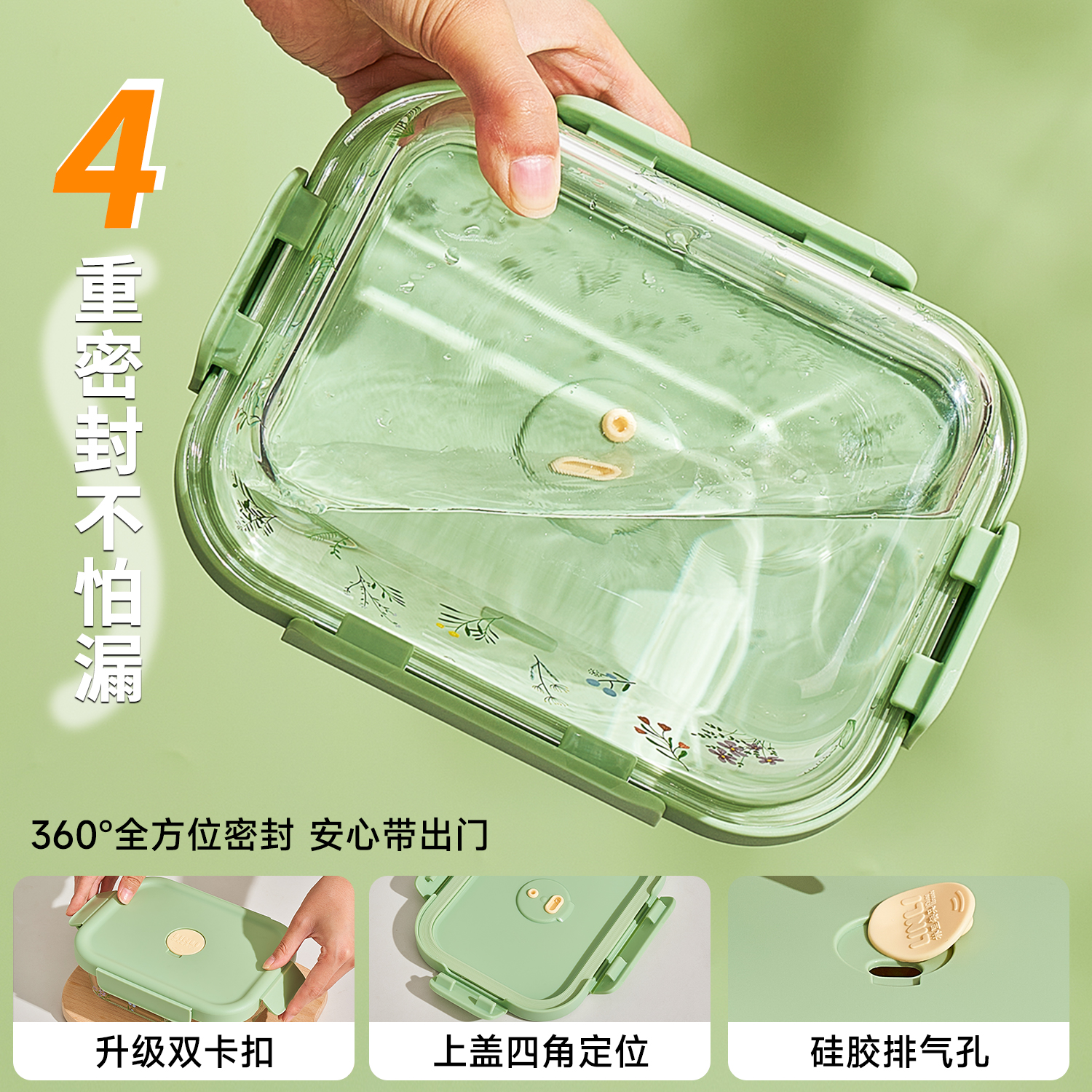 玻璃饭盒可微波炉加热专用的碗上班族学生带盖餐盒分隔便当保鲜盒