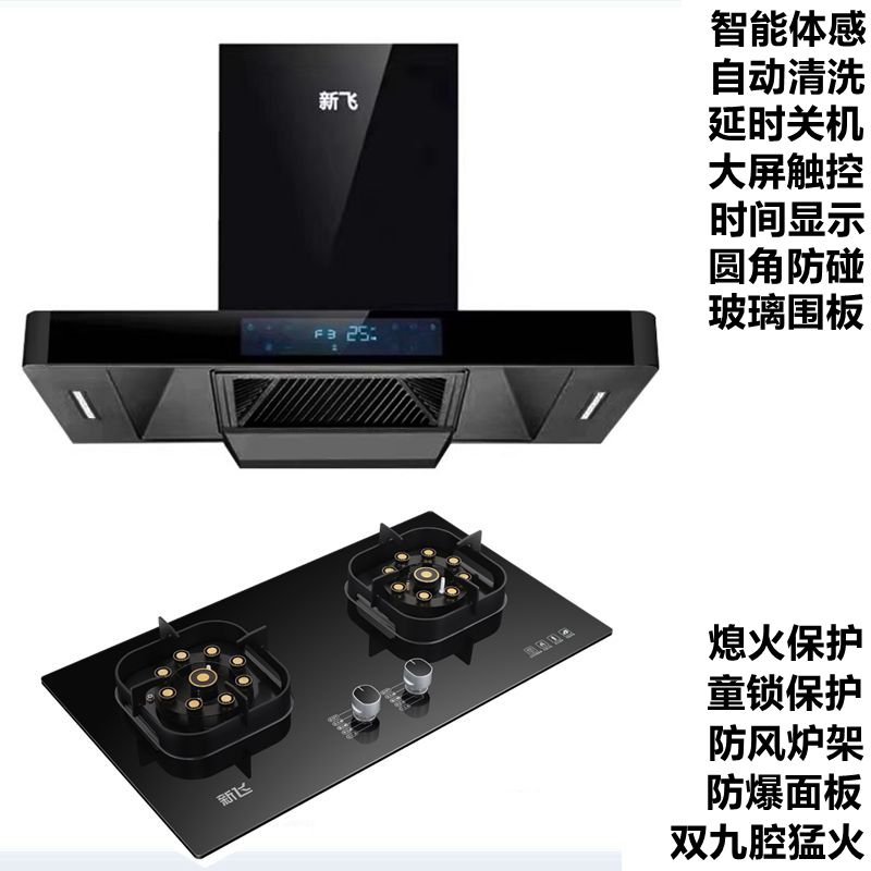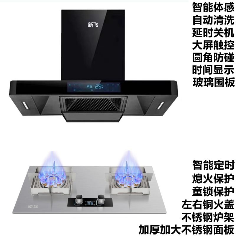 新飞顶吸式抽油烟机燃气灶套装家用厨房油烟机和煤气灶套餐组合
