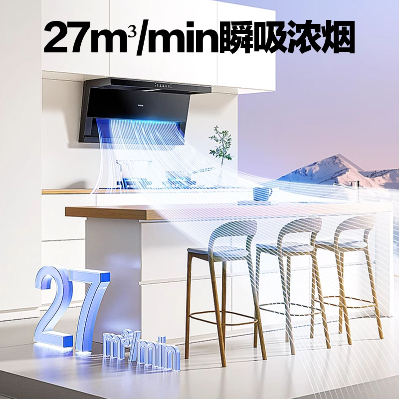 美的华凌油烟机家用厨房顶侧双吸变频挥手自清洗官方旗舰店抽烟机