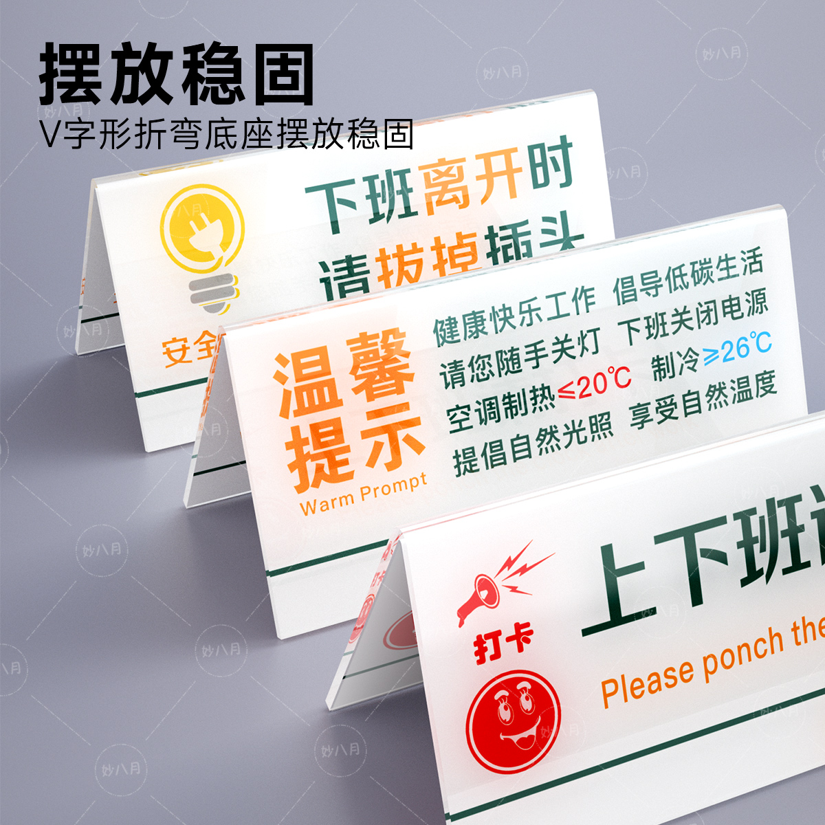 亚克力温馨提示桌牌办公室节约用电标识牌会议结束请将椅子归位提示桌牌亚克力节能标志牌节约用水提示定制
