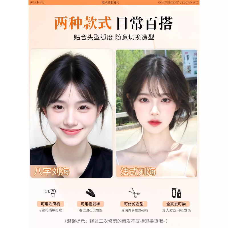 发缝魔术贴假发女片头顶自然前额遮白发增发量蓬松高颅顶刘海补发