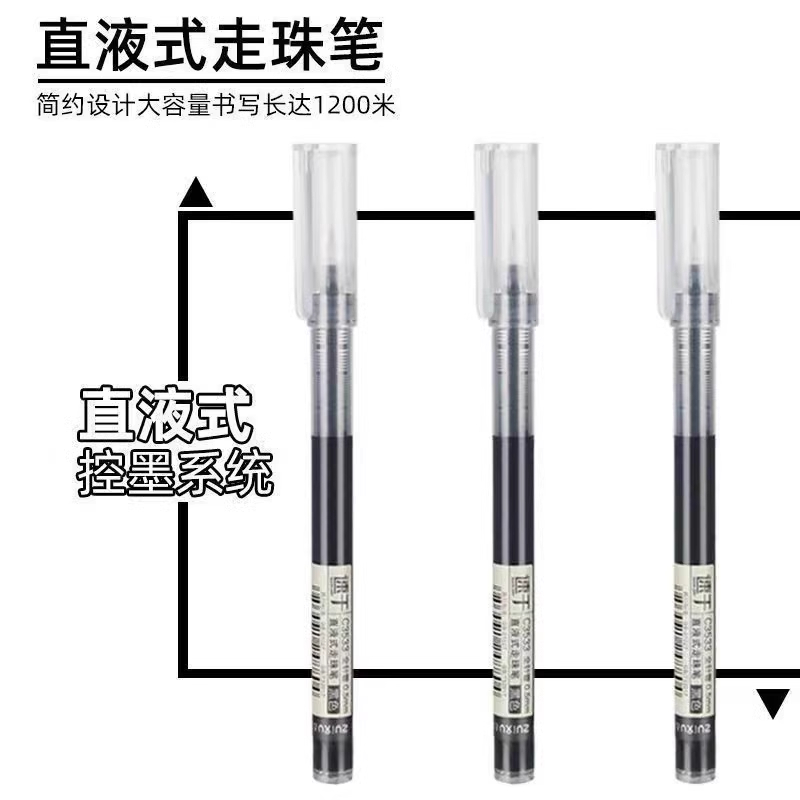 【速干防水】0.5针管直液式走珠笔考试用黑色中性笔学生作业签字