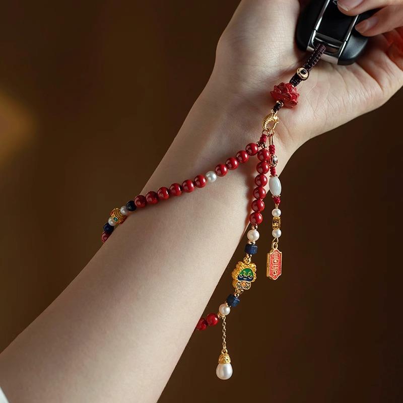 保真原石高含量朱砂钥匙扣帝王砂本命年生肖龙紫金砂汽车钥匙挂件