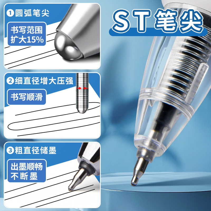 ST刷题笔高颜值按动中性笔圆珠笔黑色水笔小学生专用考试0.5速干碳素笔水性黑笔按压式做笔记签字笔非按斤卖